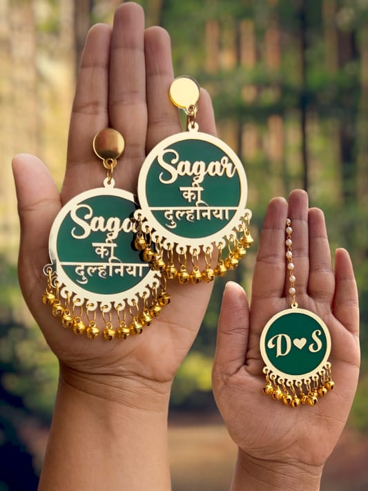 Customised Earrings with Maangtikka — a beautifully crafted set designed just for you. Made with premium stones and fine detailing, perfect to complement any festive, bridal, or special occasion look. Elegant, lightweight, and made to match your outfit seamlessly.