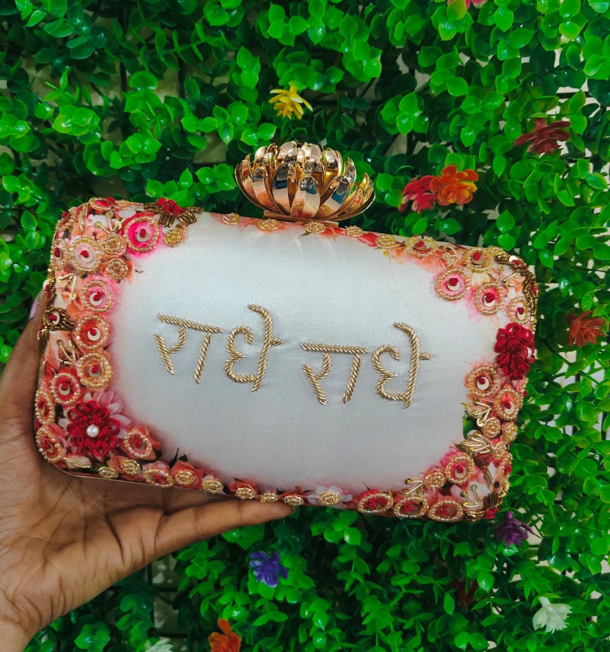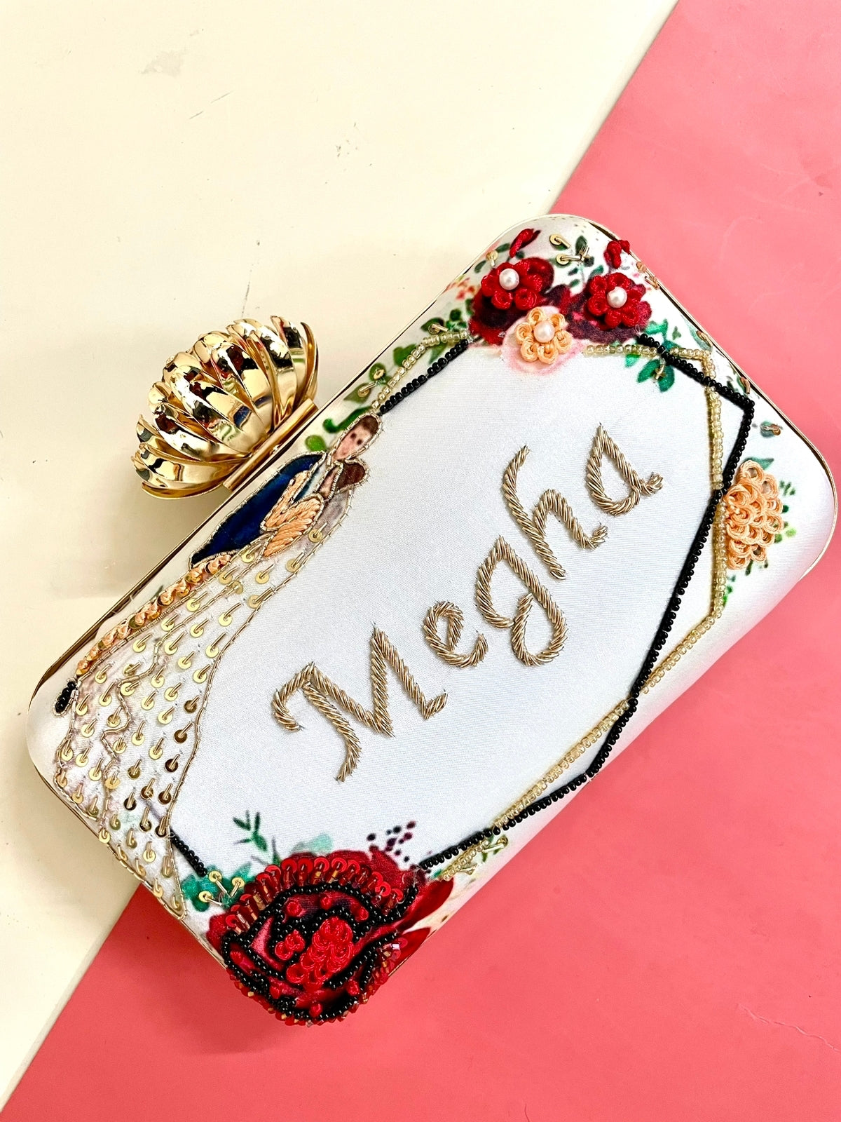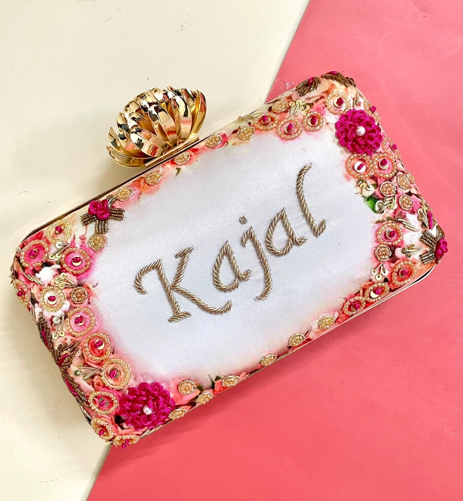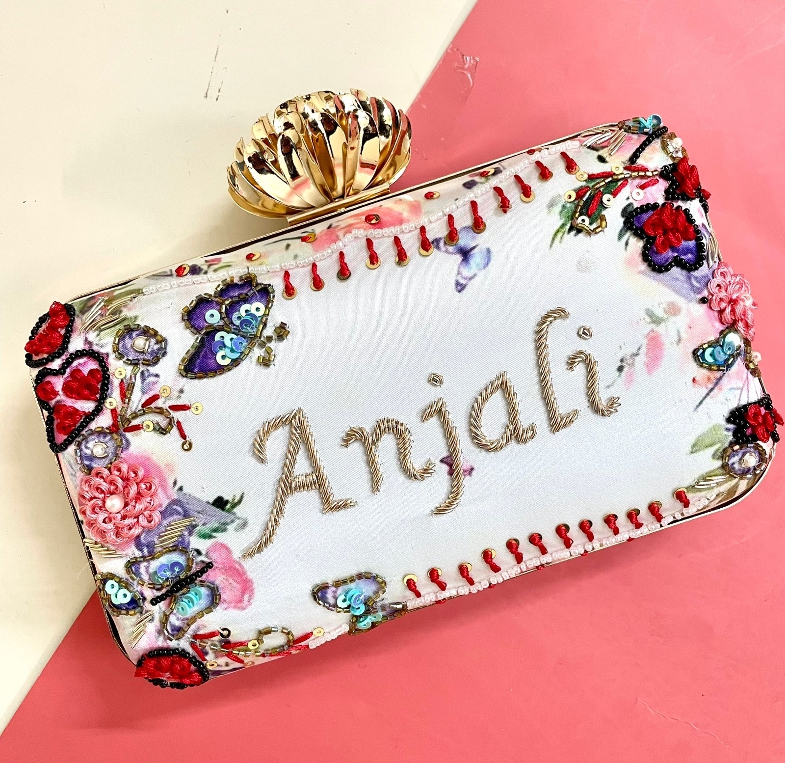 Elevate your accessory collection with this Designer Printed Embroidery Custom Clutch, crafted to blend elegance with a personal touch. Perfect for special occasions, weddings, parties, or as a thoughtful gift, this clutch allows you to customize it with your name or initials – making it truly one-of-a-kind.