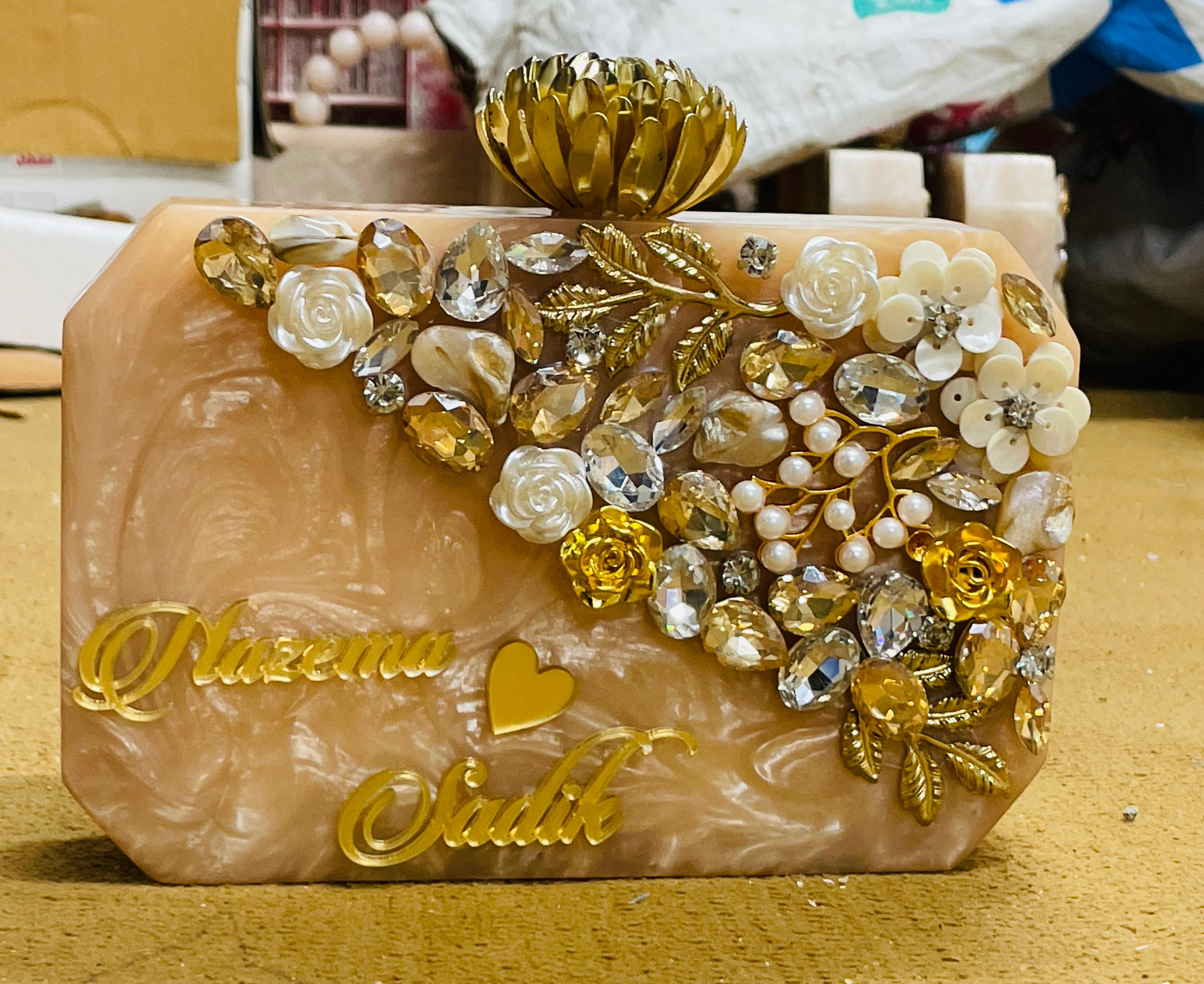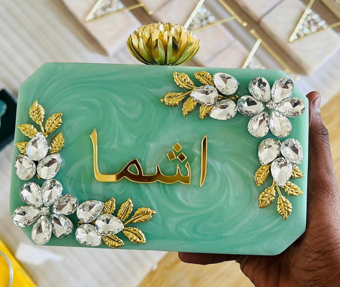 Elevate your style with the Marble Luxe Clutch, where elegance meets personalization. Crafted to perfection, this chic clutch features your name in a beautiful acrylic cutout, adding a unique and sophisticated touch. Ideal for bridesmaids, gifting, or glamorous evenings, this clutch is a must-have fashion accessory for every stylish occasion.