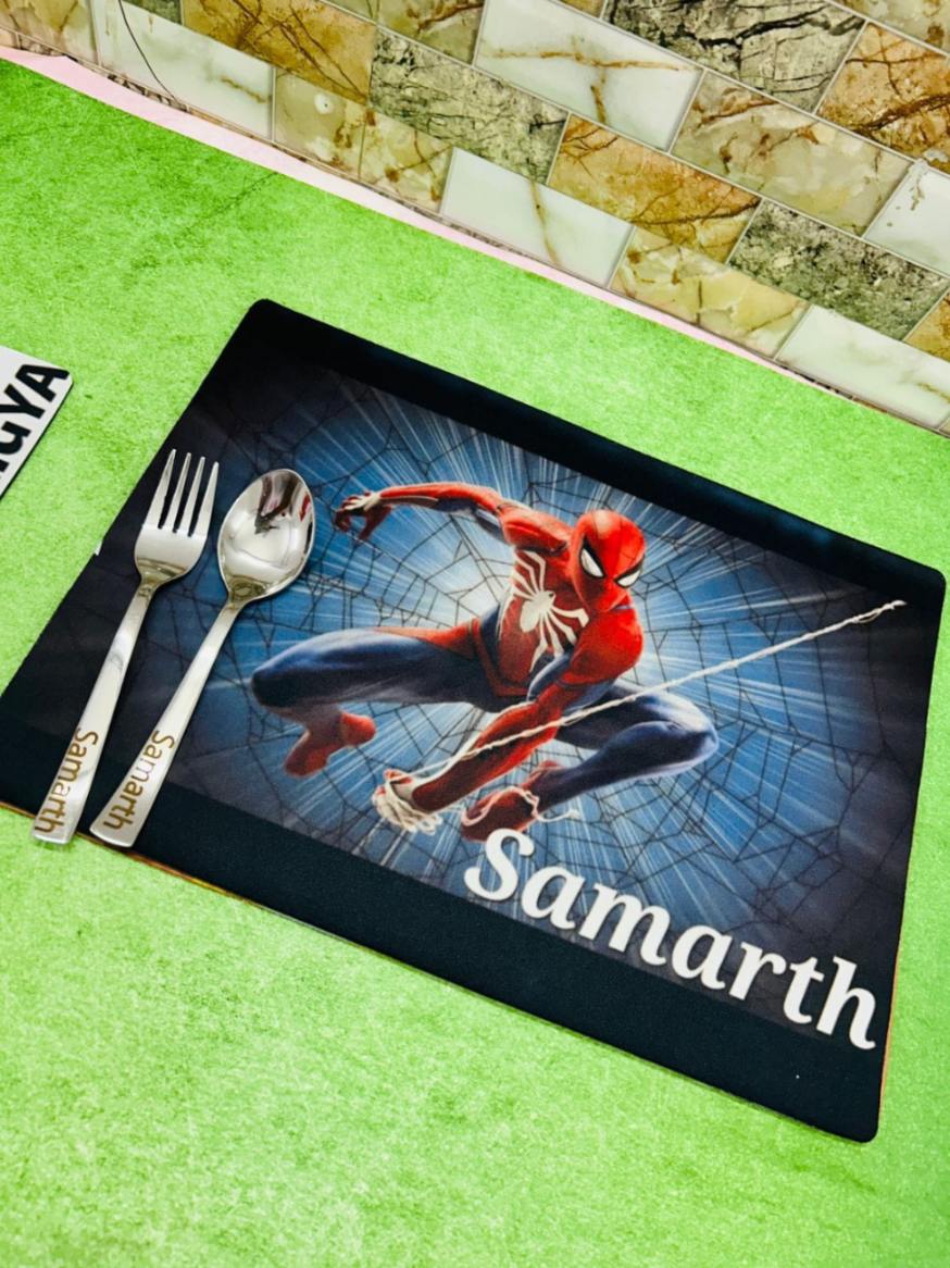 Personalised Kids Table Mat with Spoon & Fork – Rubber, 23 x 11 Inch
