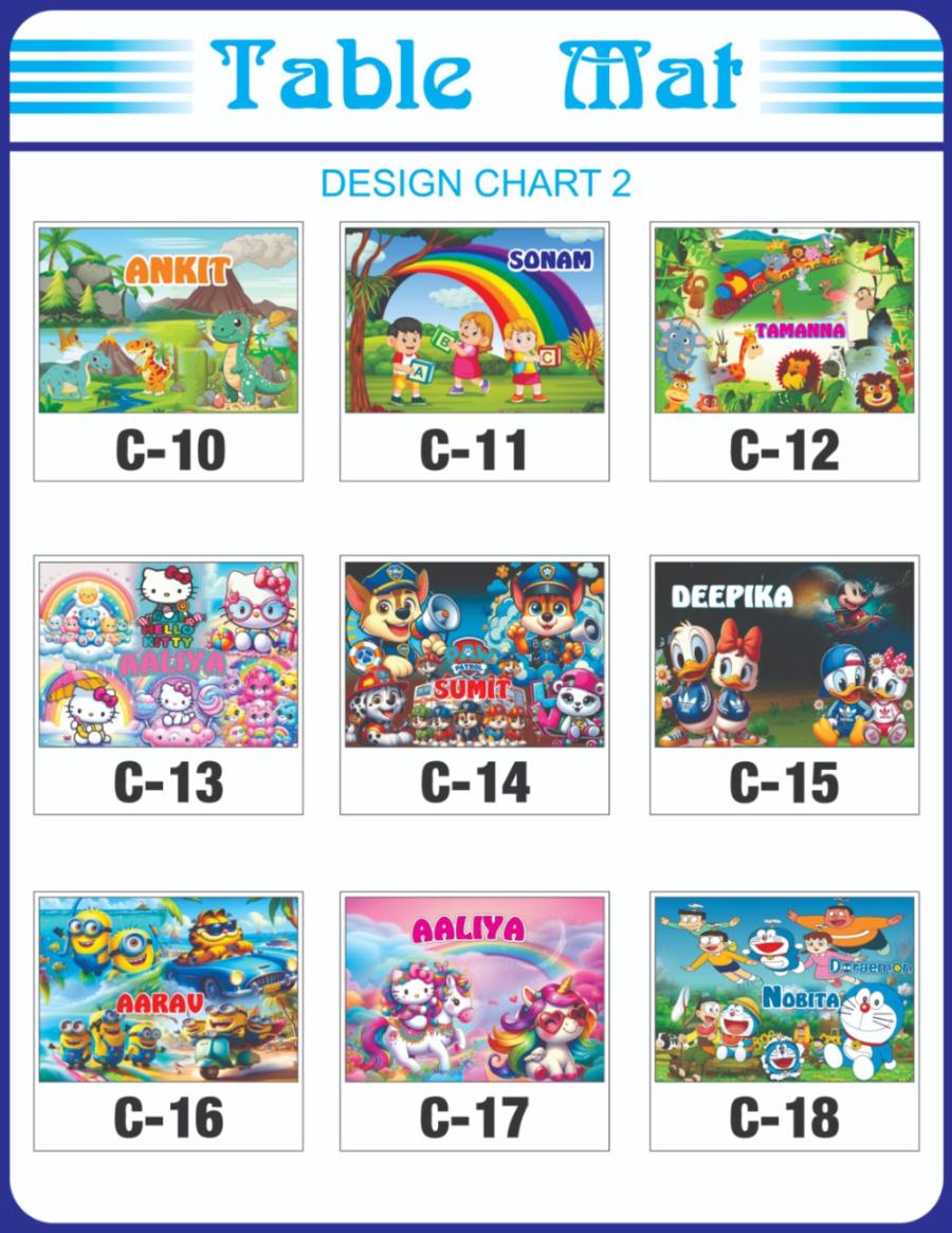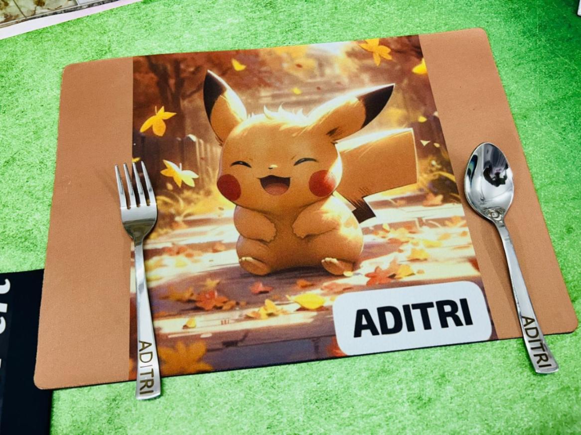 Make mealtime fun and organised with this Personalised Table Mat Set. Crafted from durable rubber, it includes a table mat along with a matching spoon and fork, all of which can be personalised with your child’s name or favourite design. Perfect for home, school, or gifting.