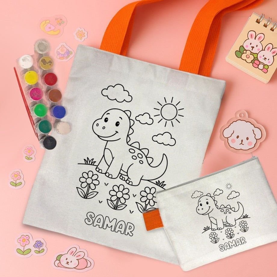 Personalized Kids DIY Tote Bag & Pouch Coloring Combo – Fun & Creative Activity Set
