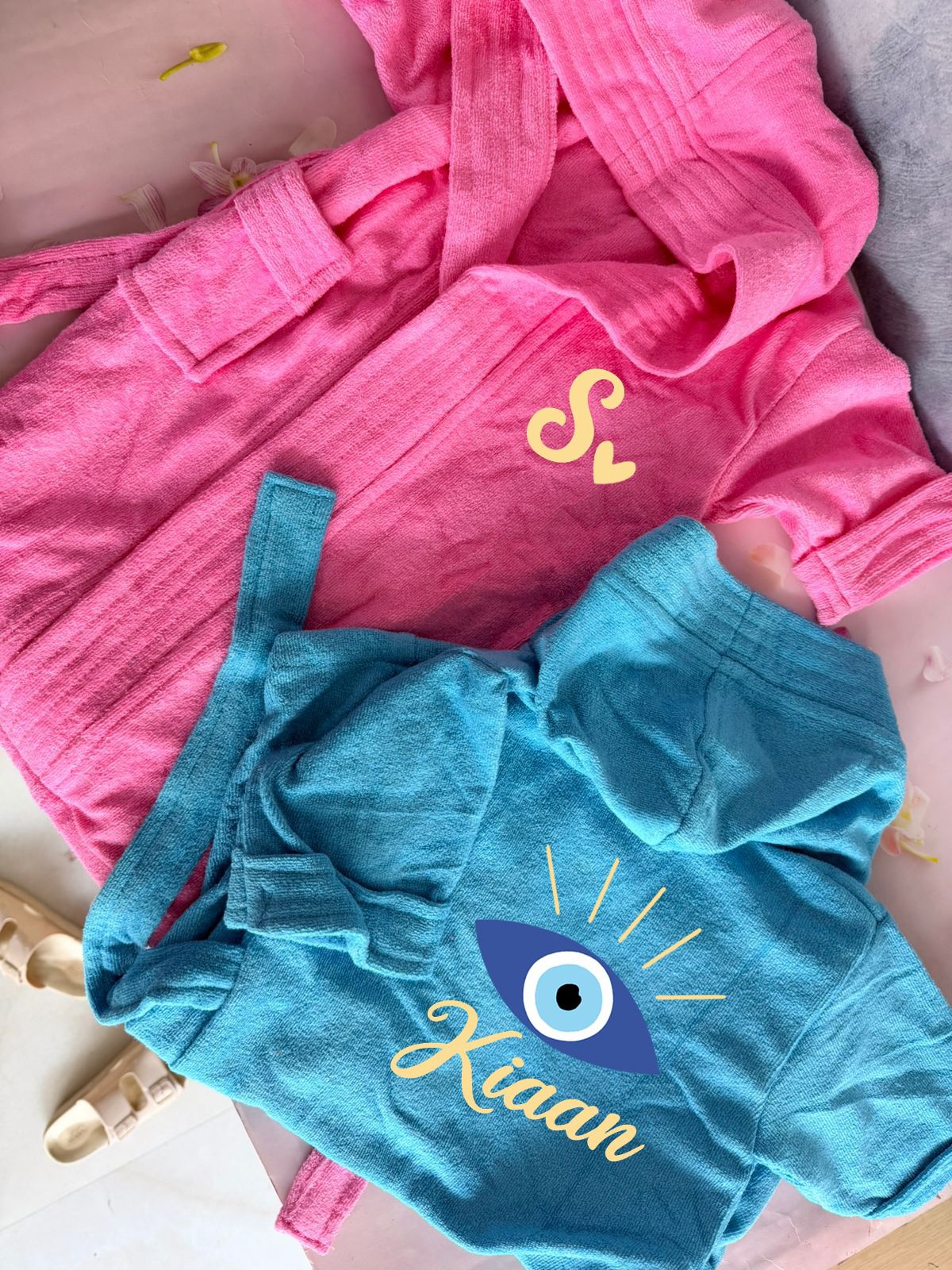 Soft, cozy, and super cute! Our infant bathrobes are made from premium double terry fabric, gentle on baby’s skin and perfect after bath time. Available in yellow, white, pink, and blue, and can be personalised with any name or theme of your choice.