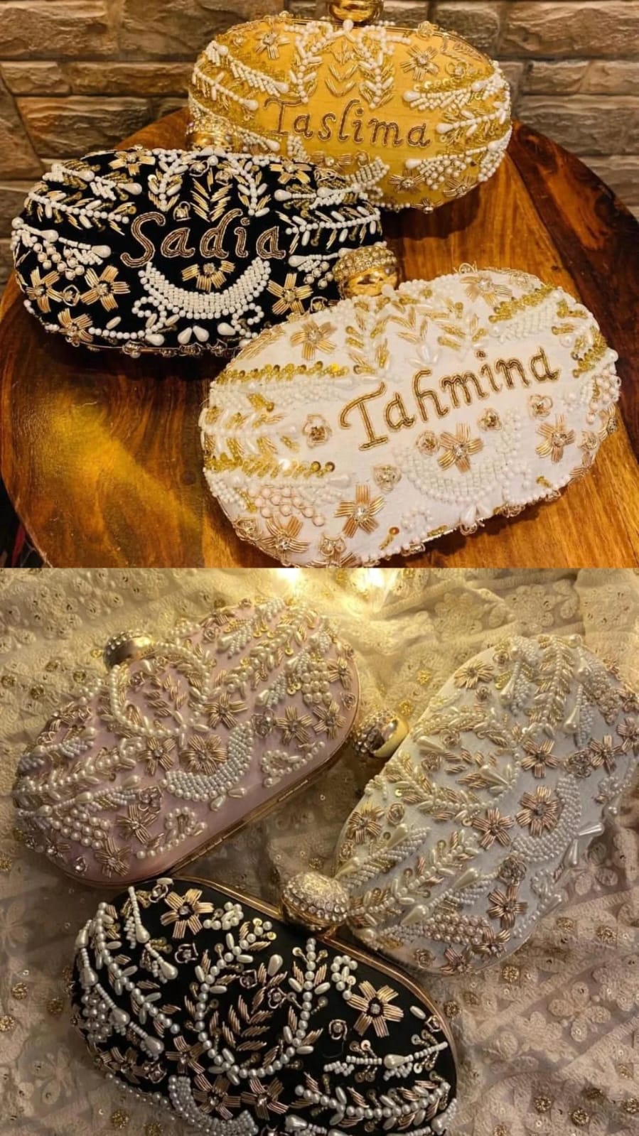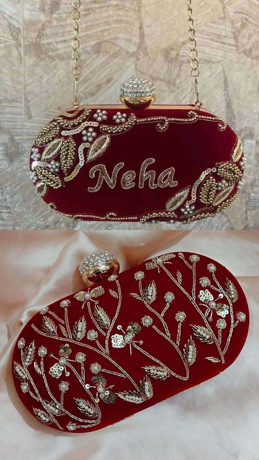 It comes with metal sling chain.. if needed any pearl chain or metal handle... charges extra