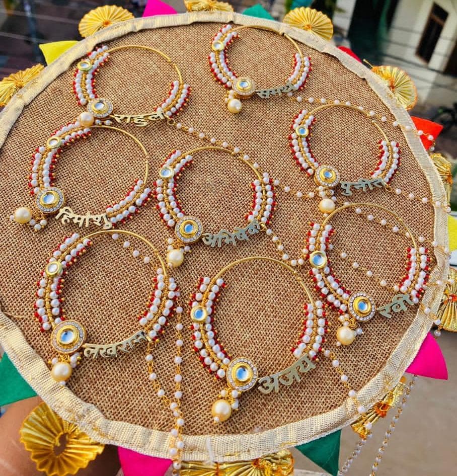 A delicately handcrafted customized nath designed to suit your style. Lightweight, elegant, and made to complete your bridal glow.Golden , silver, rosegold