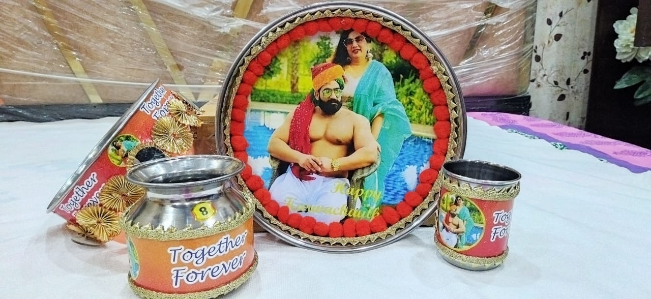 A premium and festive Karwa Chauth Thali Set that combines tradition, durability, and elegance.