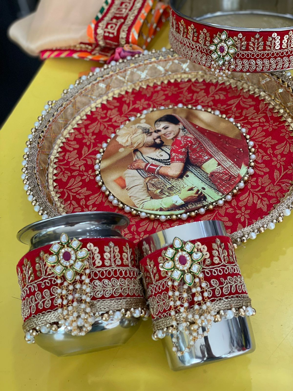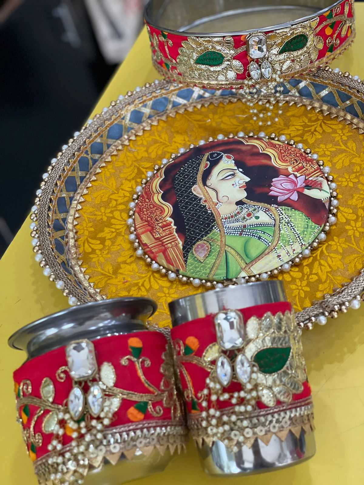 A luxurious and festive Karwachauth Thali Set that combines elegance, tradition, and high-quality craftsmanship.