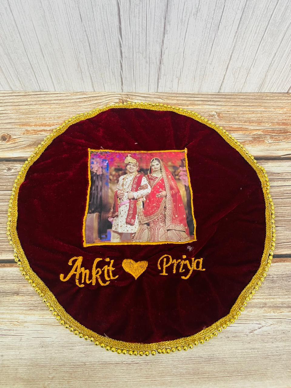 Celebrate Karwachauth in style with this Velvet Thaal Cover, available in elegant red and maroon colors. Personalize it with a name or a name + photo for a unique, festive touch. Available in square and round shapes, this premium velvet cover adds charm to your special rituals.