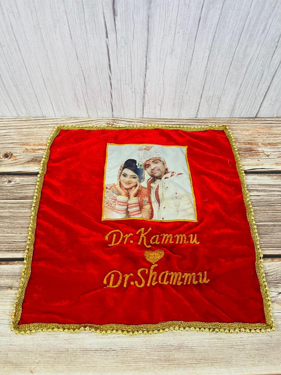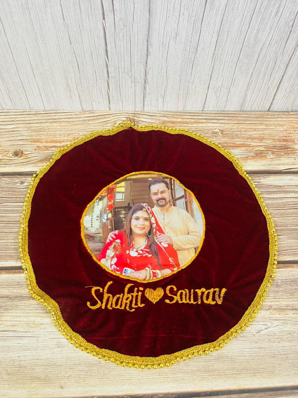 Karwachauth Special Velvet Thaal Cover – Personalized Name & Photo, 15×15 Inch