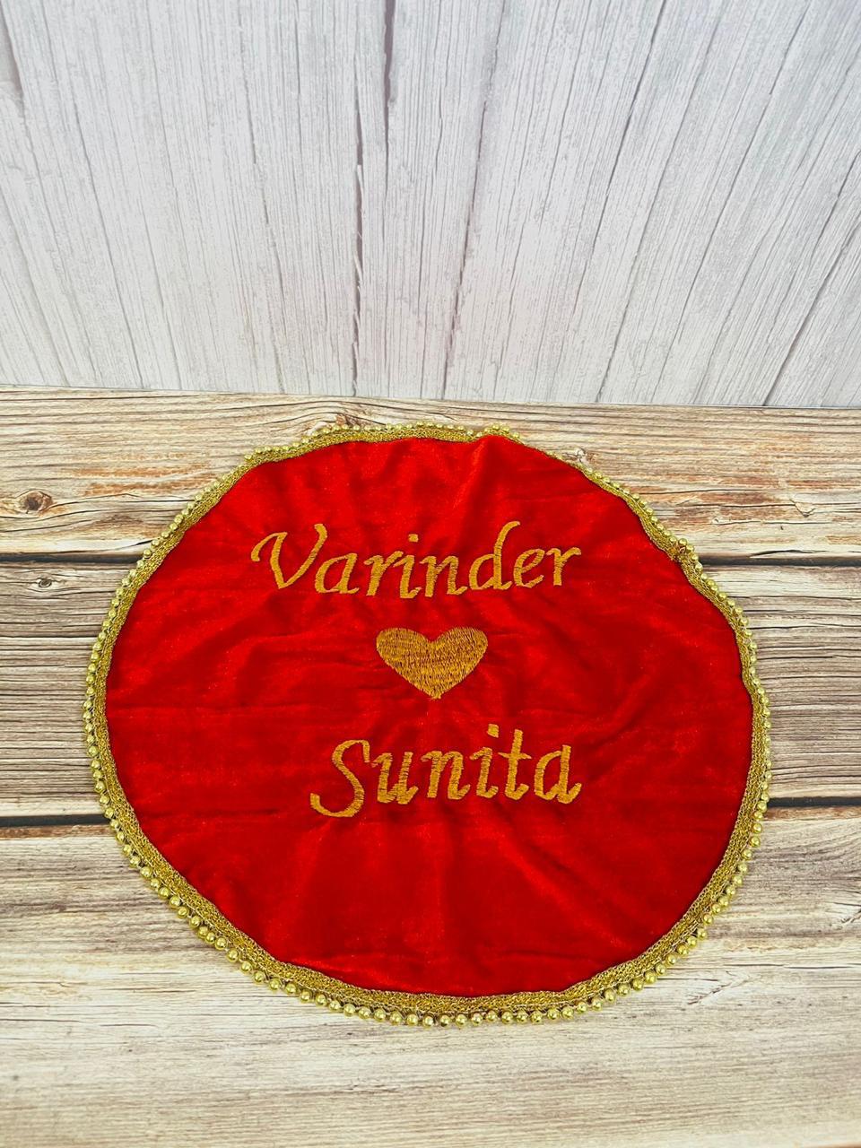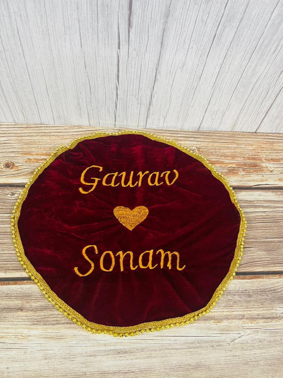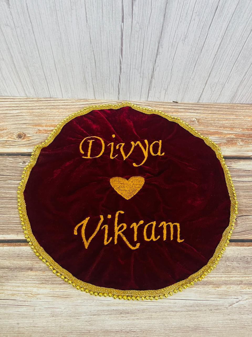 A personalized, elegant, and festive velvet thaal cover perfect for Karwachauth celebrations and gifting.