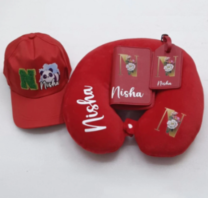 Make travel comfortable and stylish with this Kids Travel Combo. The set includes a soft velvet neck pillow, a trendy cap, a luggage tag, and a passport cover—perfect for school trips, family vacations, or gifting. Durable, practical, and fun, this combo ensures kids travel with ease and personality.