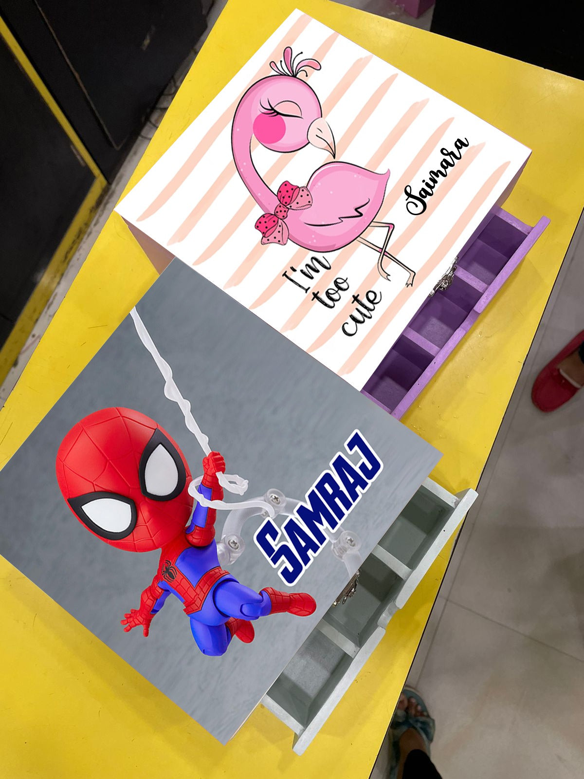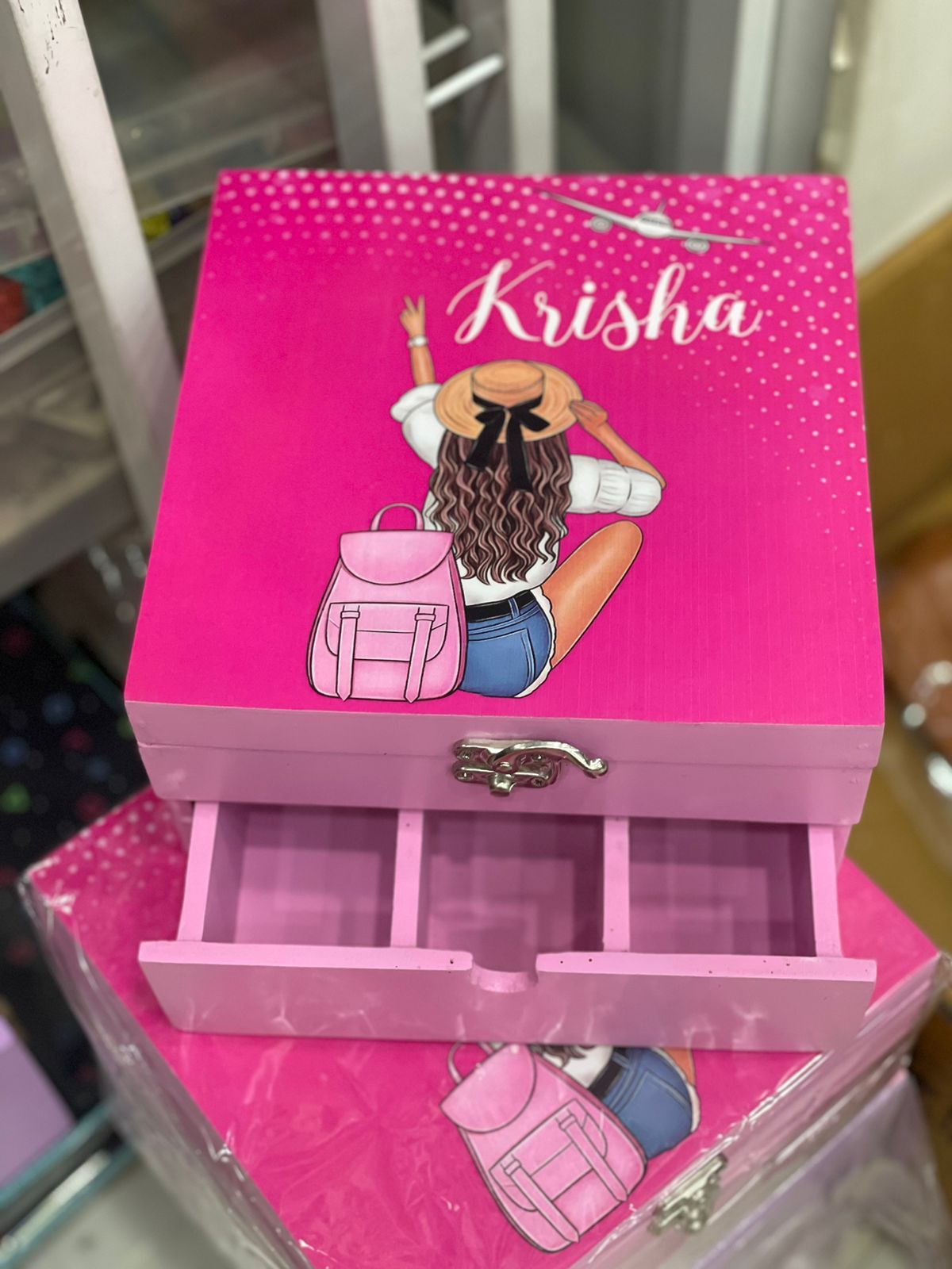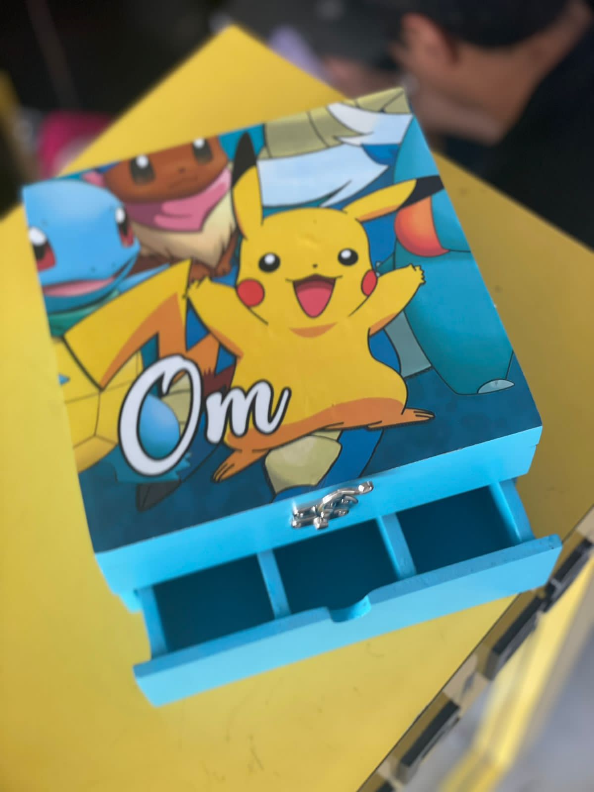 Comes with a top opening lock and a drawer with three partitions below it
